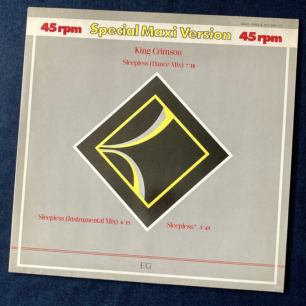The ‘Beat’ album by King Crimson was my entry point to the band in 1982 – somewhat taken by the fusing of art rock and the Talking Heads connections, buying that album was something of an educated guess but one that paid off. ‘Beat’ was the middle album of a trio from the early 1980s and this ‘Sleepless’ single featured here was the lead-off single from the third part of that trio, 1984’s ‘Three of a Perfect Pair’. By this stage of the game, the band clearly had some ambitions to have something of a go at single chart success and ‘Sleepless’ took aim with a smoothed-out, funked up, sleek-lined rhythmic juggernaut of a sound that was fashioned into different mixes across the parent album as well as 7″ and 12″ releases, aided and abetted by celebrity mixers of the day, Bob Clearmountain and the more dance-groove focussed François Kevorkian – and in so doing, leaving us with some vinyl-only version craziness some 41 years on from its original release.