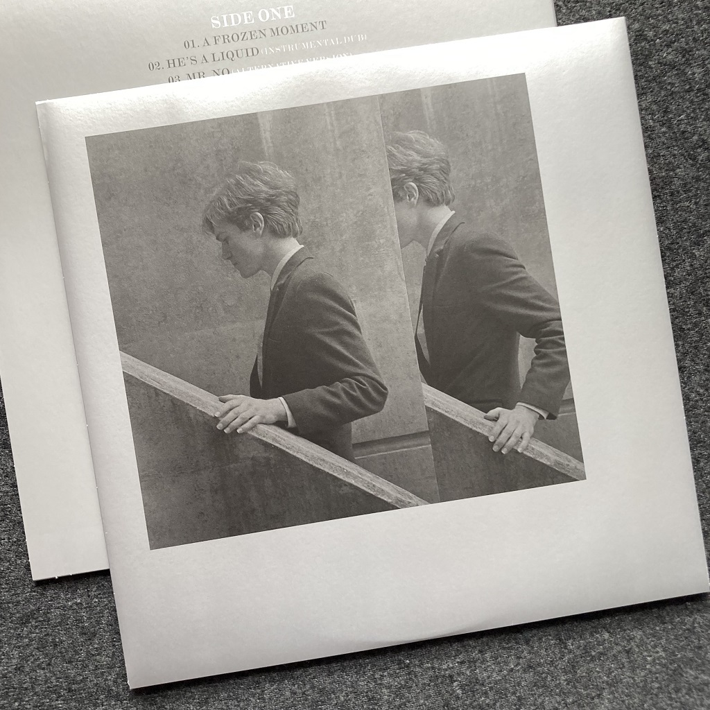This compilation, intended as some kind of ‘related works’ companion piece in the ‘Metamatic’ universe, was pressed up as a limited edition of 500 copies, on grey vinyl. It comes styled in a wonderful sleeve design by Jonathan Barnbrook, very much in keeping with the ‘Metamatic’ era house style, and focusing on a wonderful photo of John Foxx by Chris Gabrin, which again dates from the era and very much adapts Foxx himself and his ‘grey suit’ persona dead-centre into the narrative of the aesthetic.