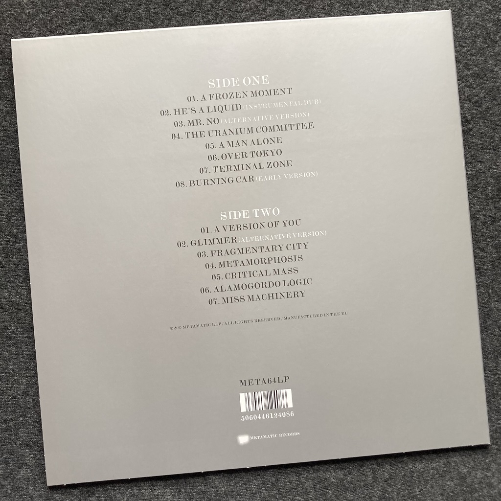 The music contained in the album is a selection of tracks drawn from disc three of 2018’s 3 CD box set of ‘Metamatic’ (Metamatic META63BX, released 25th May, 2018). It is not a complete equivalent of that disc however, several tracks are missing. So, if you are seeking a complete record of the ‘Metamatic’ era archive, you’ll still need to seek that out.